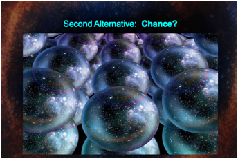 So what about the second alternative, that the fine-tuning is due to chance? The problem with this alternative is that the odds against the universe’s being life-permitting are so incomprehensibly great that they cannot be reasonably faced. In order to rescue the alternative of chance, its proponents have therefore been forced to adopt the hypothesis that there exists a sort of World Ensemble or multiverse of randomly ordered universes of which our universe is but a part. Now comes the key move: since observers can exist only in finely tuned worlds, of course we observe our universe to be fine-tuned!