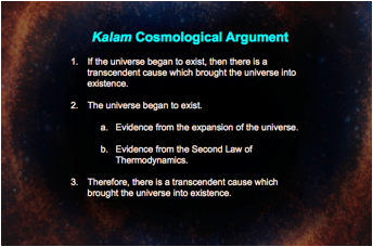 Consider first the kalam cosmological argument: