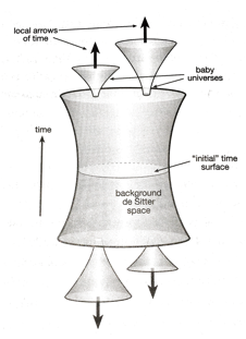 Let me raise two concerns about this model. First, not only are the production mechanisms of such baby universes admittedly conjectural, but such a scenario violates the so-called unitarity of quantum theory by allowing irretrievable information loss from the mother universe to the babies. Stephen Hawking, apologizing to science-fiction fans everywhere, came to admit, “There is no baby universe branching off, as I once thought. The information remains firmly in our universe.” [18]